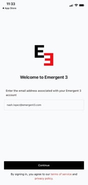 When you have successfully downloaded the E3 on your phone and you have accepted the email invite, type in your work email or the email address you have associated with E3.