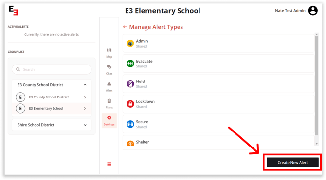 Click Create New Alert to create a new alert type.