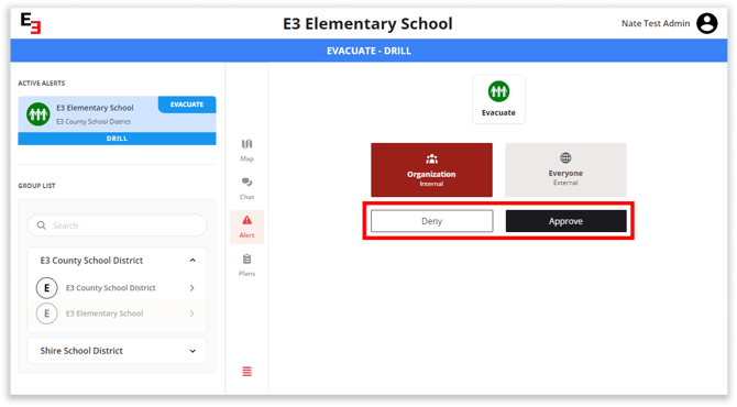 To approve or deny the alert as an admin user, simply go to your alert screen and click on the Approve or Deny button.