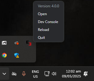 1. Right-click on the E3 App Icon: Locate the Emergent 3 app icon in the system tray at the top-right corner of your Mac's menu bar. Right-click on the icon to reveal a dropdown menu.