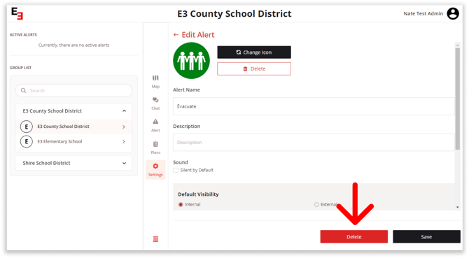 Click Delete and press Ok on the confirmation pop-up to delete the alert.