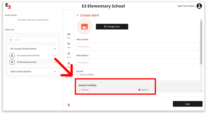 If the user sends the alert as Internal, the alert will be sent to all members of the selected group whereas External will send the alert to both internal and external (local police).