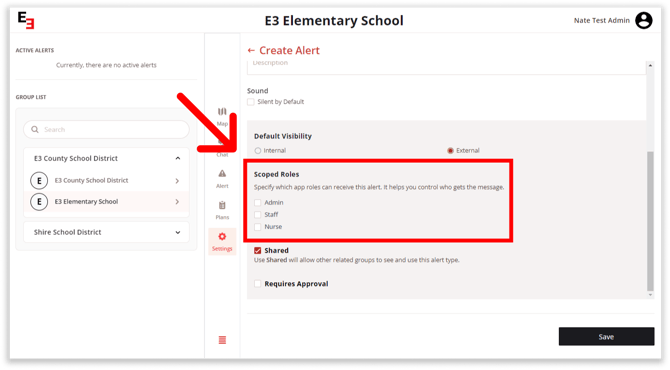 Under Scoped Roles, you can limit the roles by marking which roles the alert will be sent to.