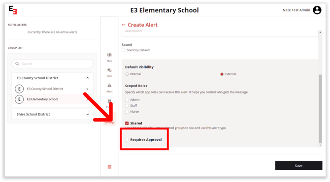 Alerts with Requires Approval checked will require an admin's approval before it is sent to users. For more information, visit the article below: