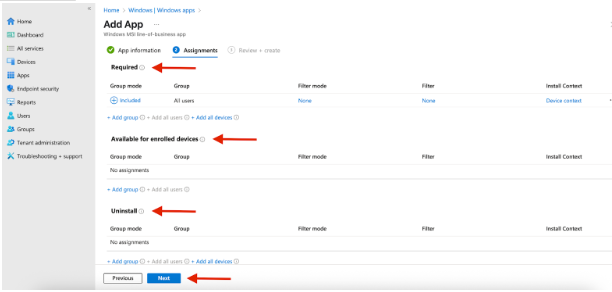 - Uninstall: The app will be removed from assigned users/devices if already installed