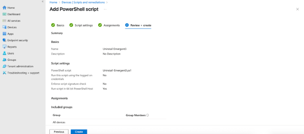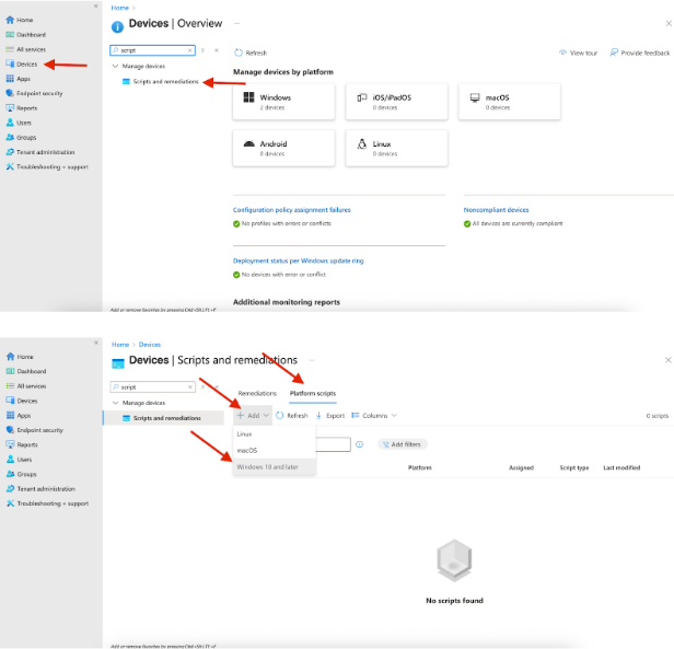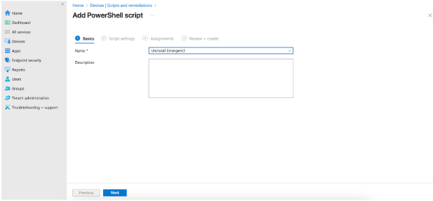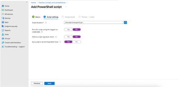 Devices > Scripts and remediations > Add > Windows 10 and later > PowerShell