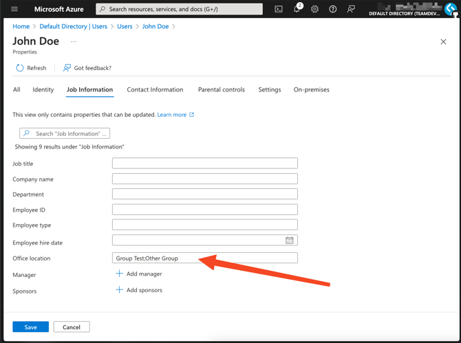 * If you are already using the user's officelocation attribute, you can choose another attribute that is not being used.
