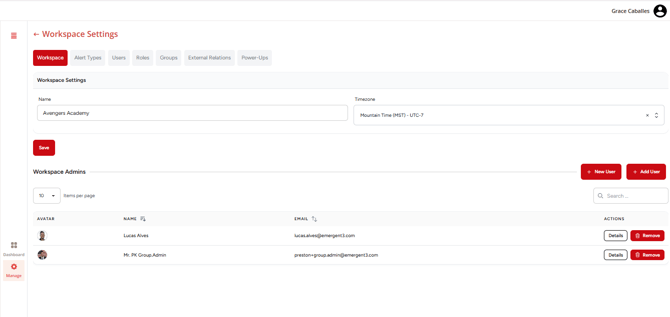 The Manage Workspace feature allows admins to manage users, groups, alert types, and integrations, all without leaving the app.
