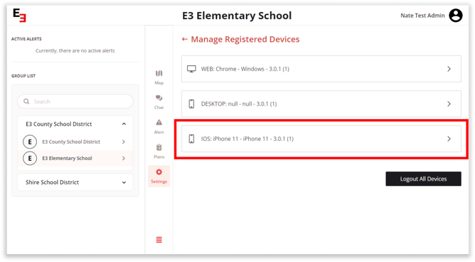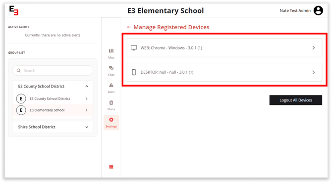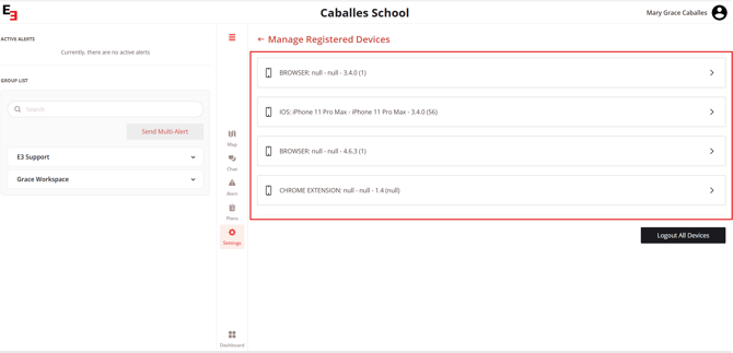 This page will display all the devices where the user has an active E3 account signed in.