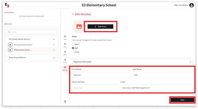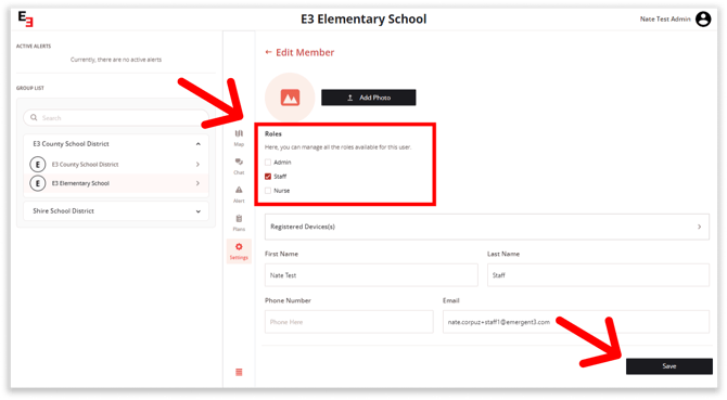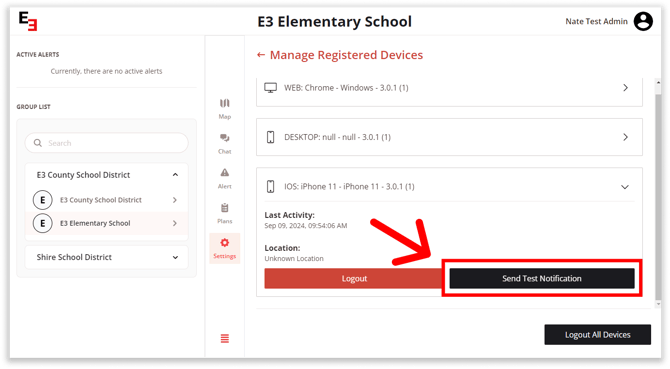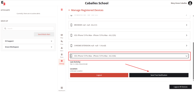 To make sure your members can receive alerts during critical times, you have the option to send a Test Notification to individual members. This eliminates the need to send a drill or alert to the entire school just to check if members are receiving notifications.