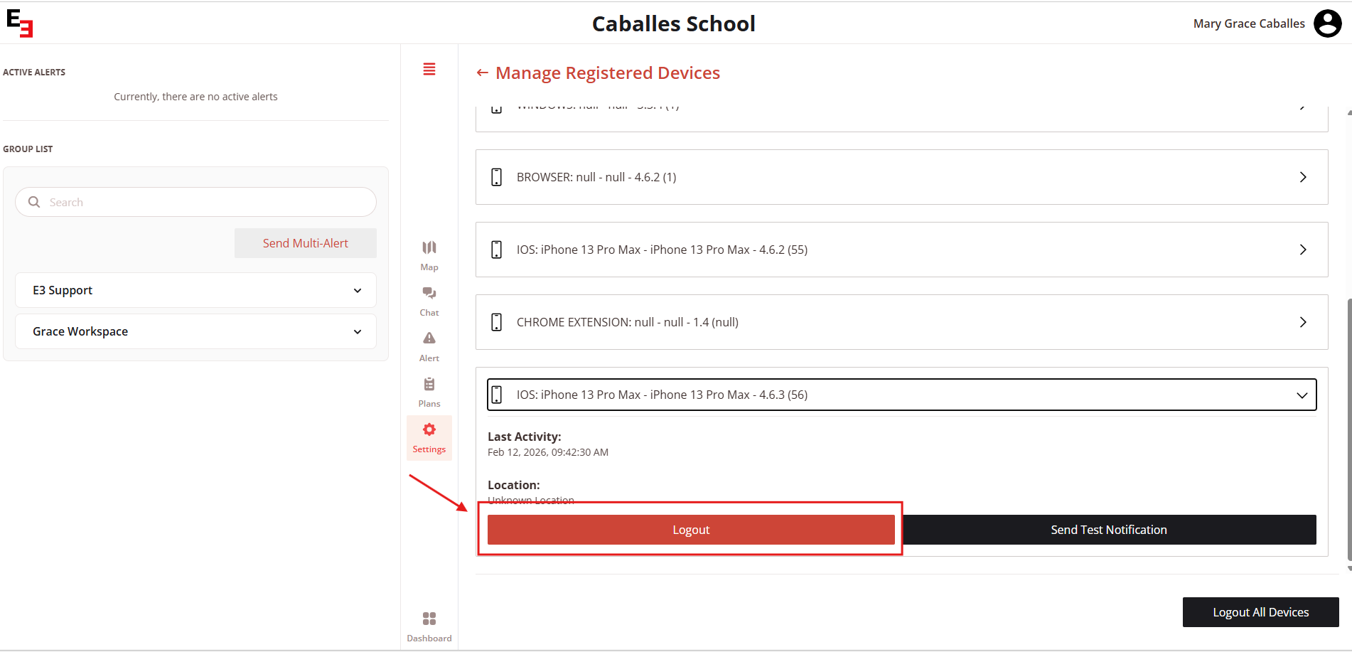 Click on Logout All Devices.