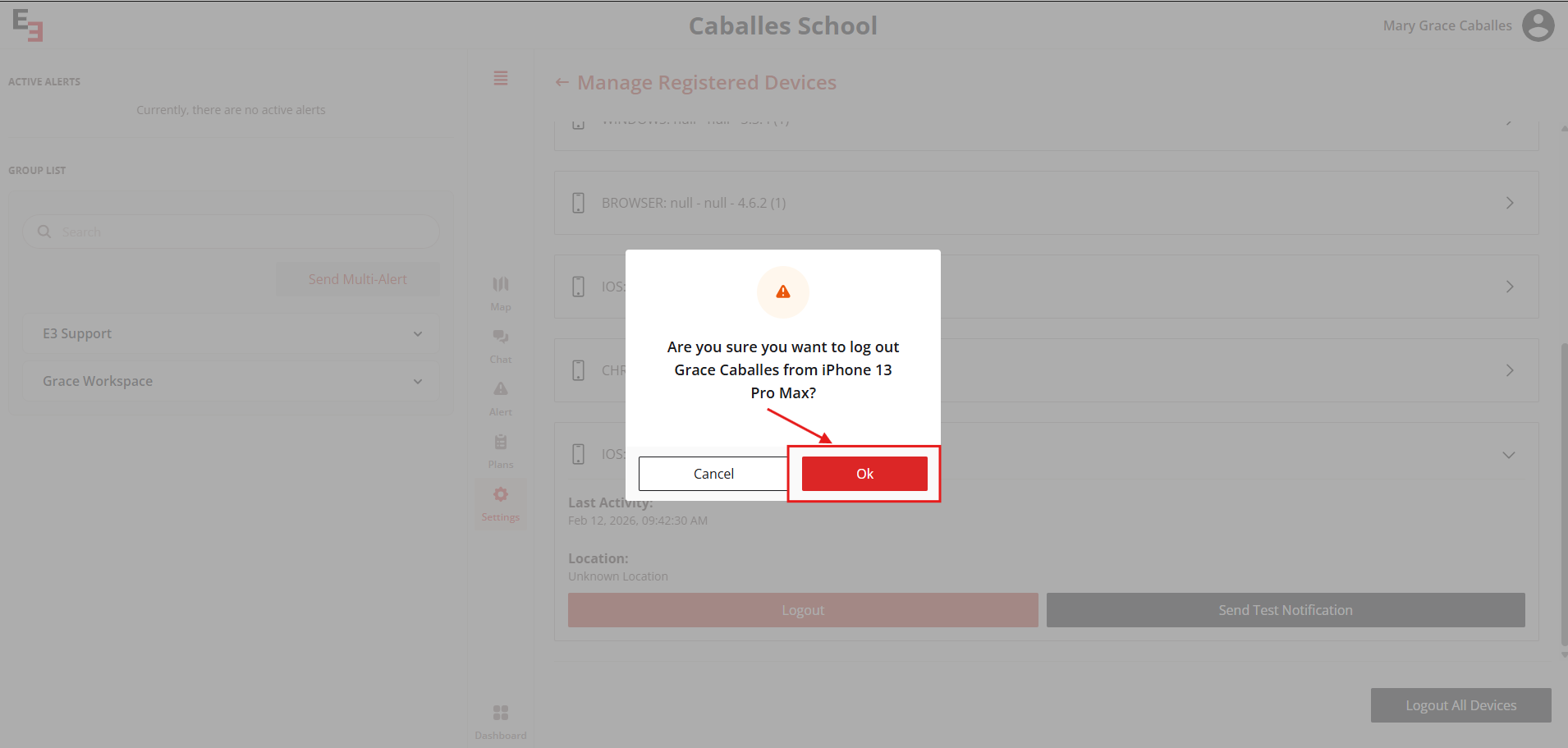 Click the device you want to log the user out from.