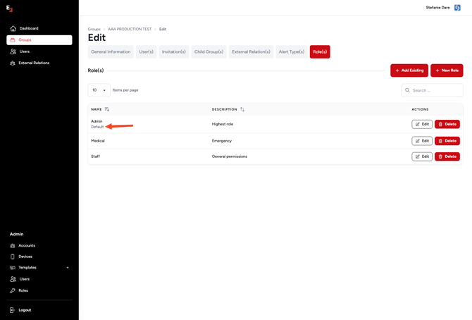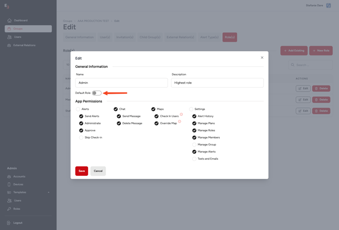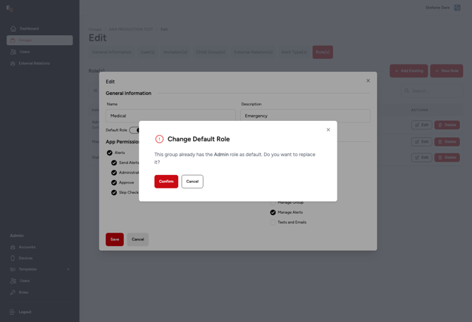 Only one role can be designated as the default role for each group if you try to designate a role as default in a group with a default role. You will see the following confirmation popup: