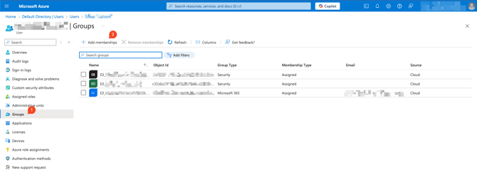 - Your configured permissions should have User. Read. All and GroupMember. Read. All as in the image below, both with the green check marked