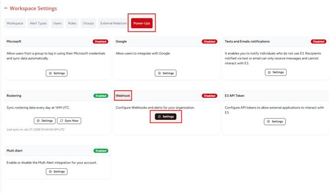 Locate Webhooks and select Settings.