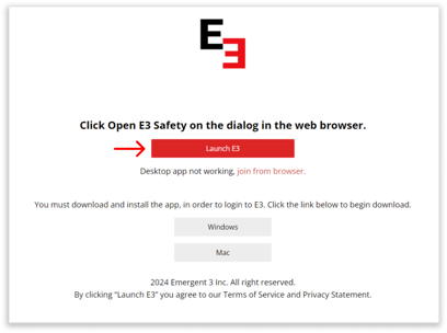 Be sure you have the Windows or Mac Desktop app downloaded and installed before hitting Launch E3.