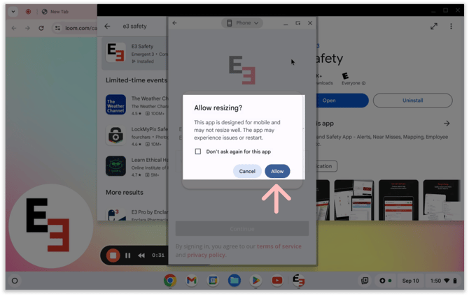 Click Allow after tapping on Resizable and resize the app according to your preferences.
