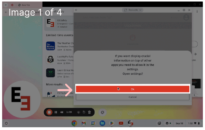 As you skip battery optimization, tap Ok and allow E3 to display over other apps from the settings.