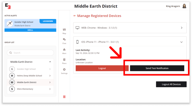 To make sure your members can receive alerts during critical times, you have the option to send a Test Notification to individual members. This eliminates the need to send a drill or alert to the entire school just to check if members are receiving notifications.