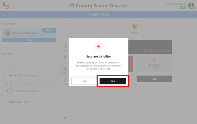 Clicking Yes on Escalate Visibility will immediately send the alert to first responders.