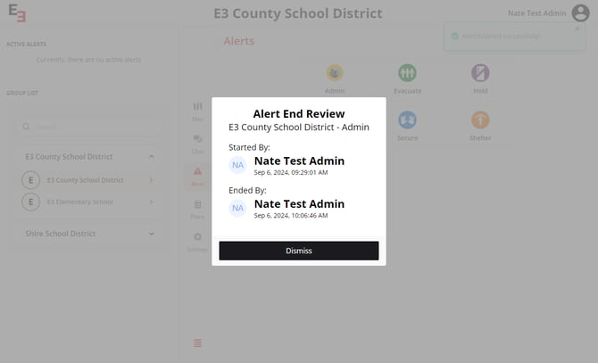 Note: This ends the alert and triggers a push notification to all involved.