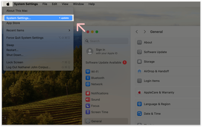 Click the Apple icon → System Settings.