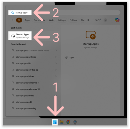 Open the Start menu, type “Startup Apps”, then open that settings page.