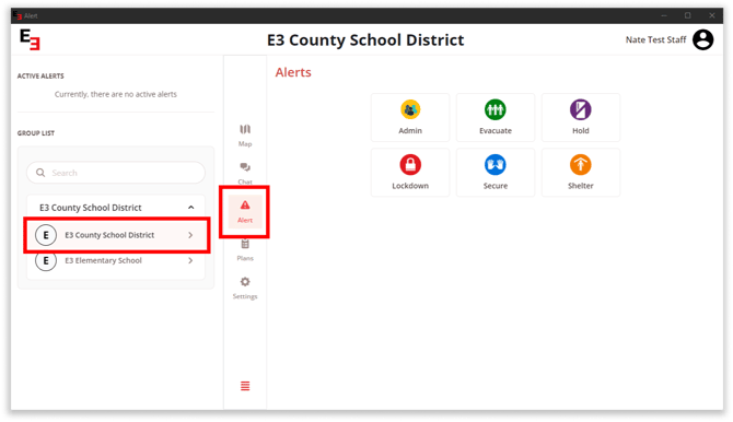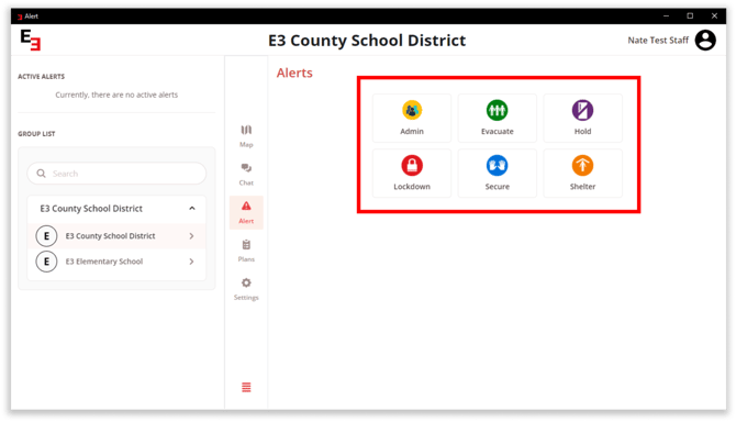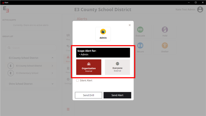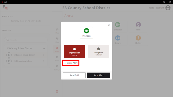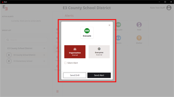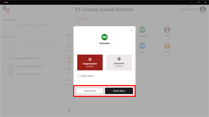 Click the Send Drill button for a practice. Click the Send Alert button for live alert.