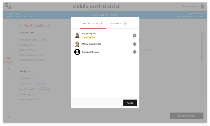 Follow these steps to quickly view who checked-in and who didn't during the alert.