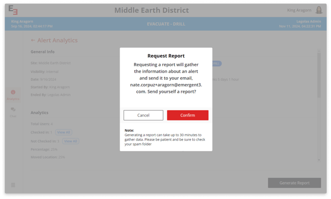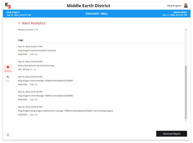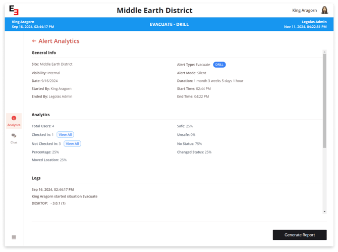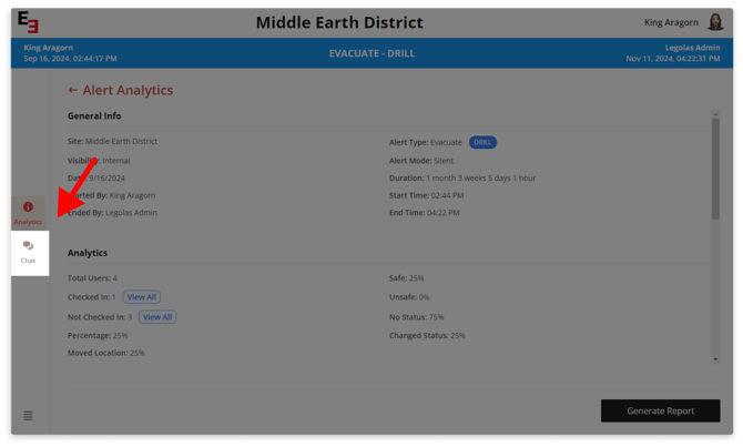 Alert History: Logs, Chat, Check-In List, and Generating a Report